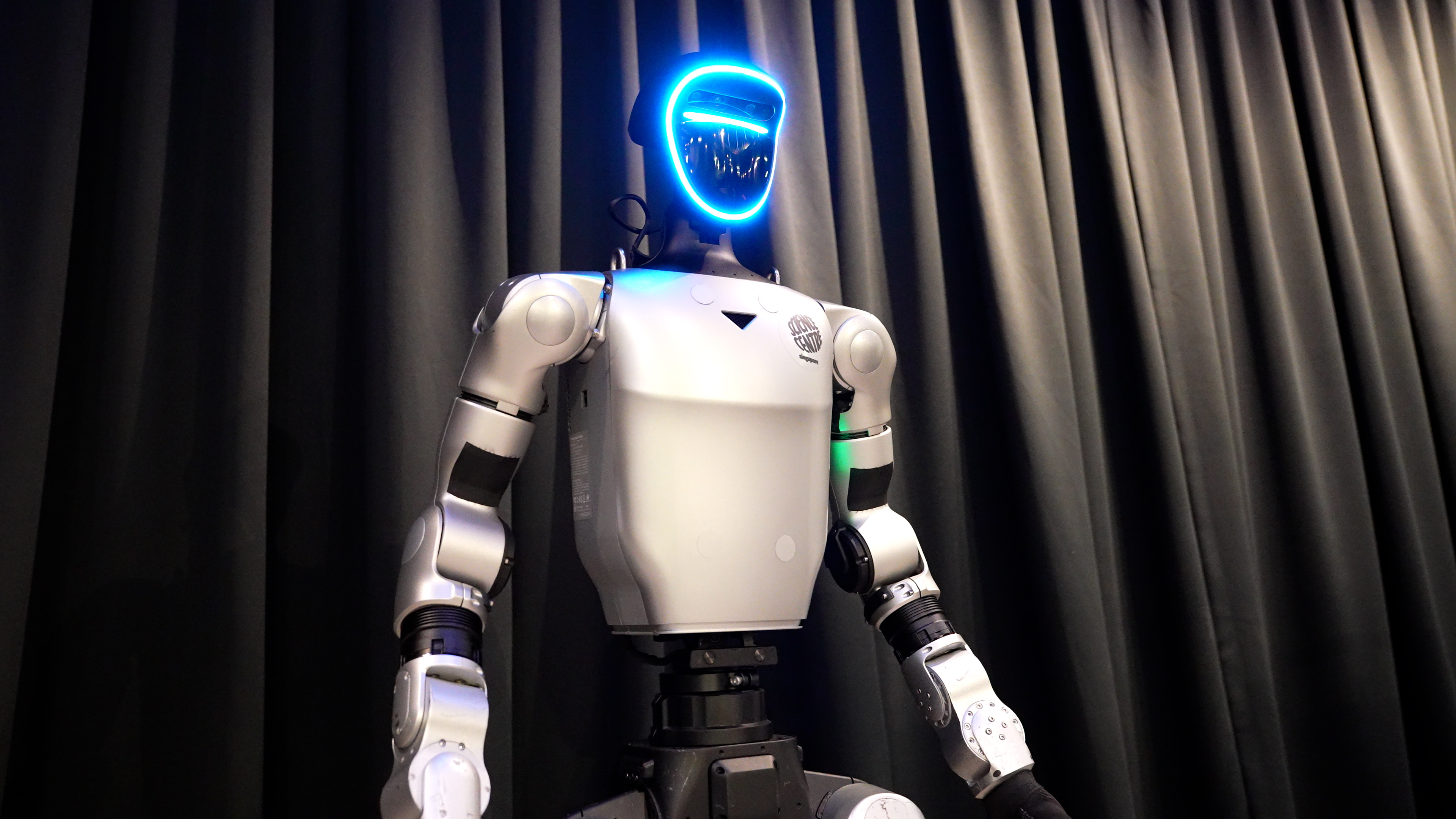 For our listeners without any visual reference, we are currently featuring a life-sized robot standing at about 130cm. It has a face, arms, legs, all made of mainly lightweight, high-strength materials. You can check it out in our show notes in the link below, or head over to our YouTube channel.